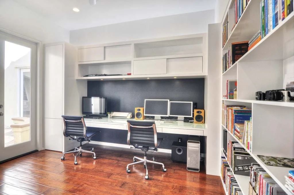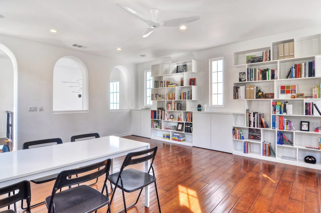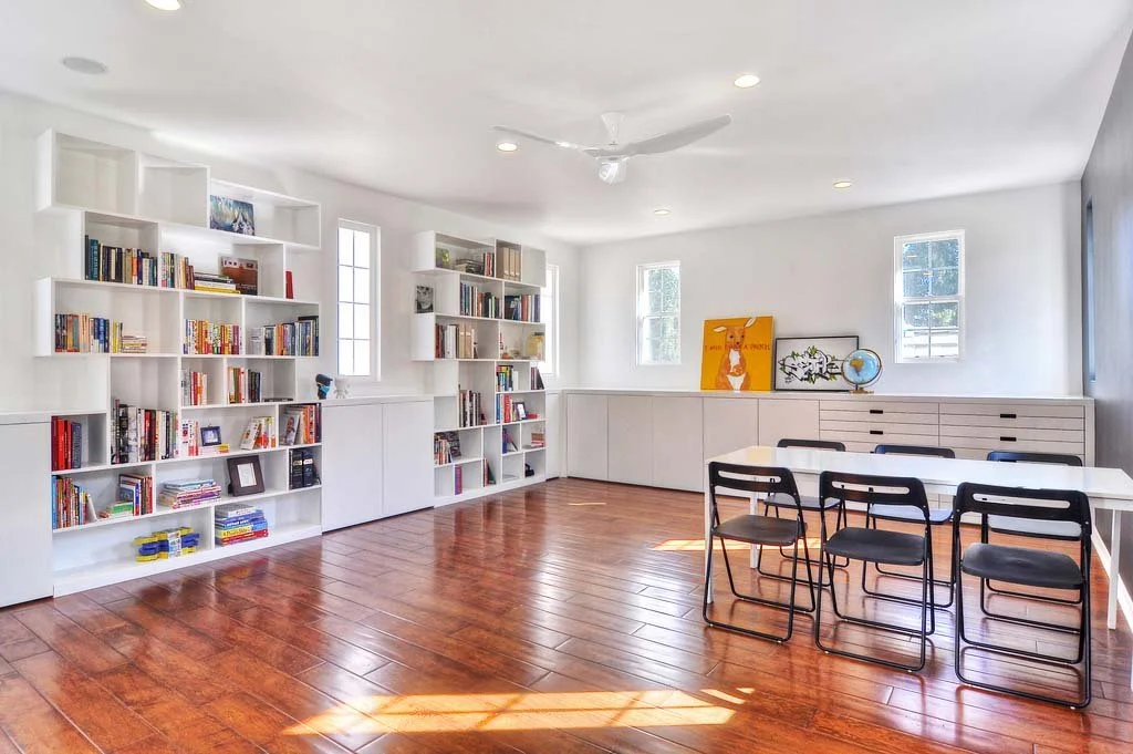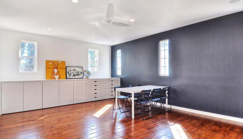 THE CHALLENGE WAS TO USE SIMPLE, MINIMALISTIC MATERIALS AND CREATE SOMETHING THAT FELT ELEGANT AND UNDERSTATED. THIS WAS ACHIEVED BY PLAYING WITH FORMS AND FUNCTION, AS SEEN, FOR INSTANCE, IN THE CUSTOM BUILT-INS FOR THE OFFICE AND ART STUDIO.