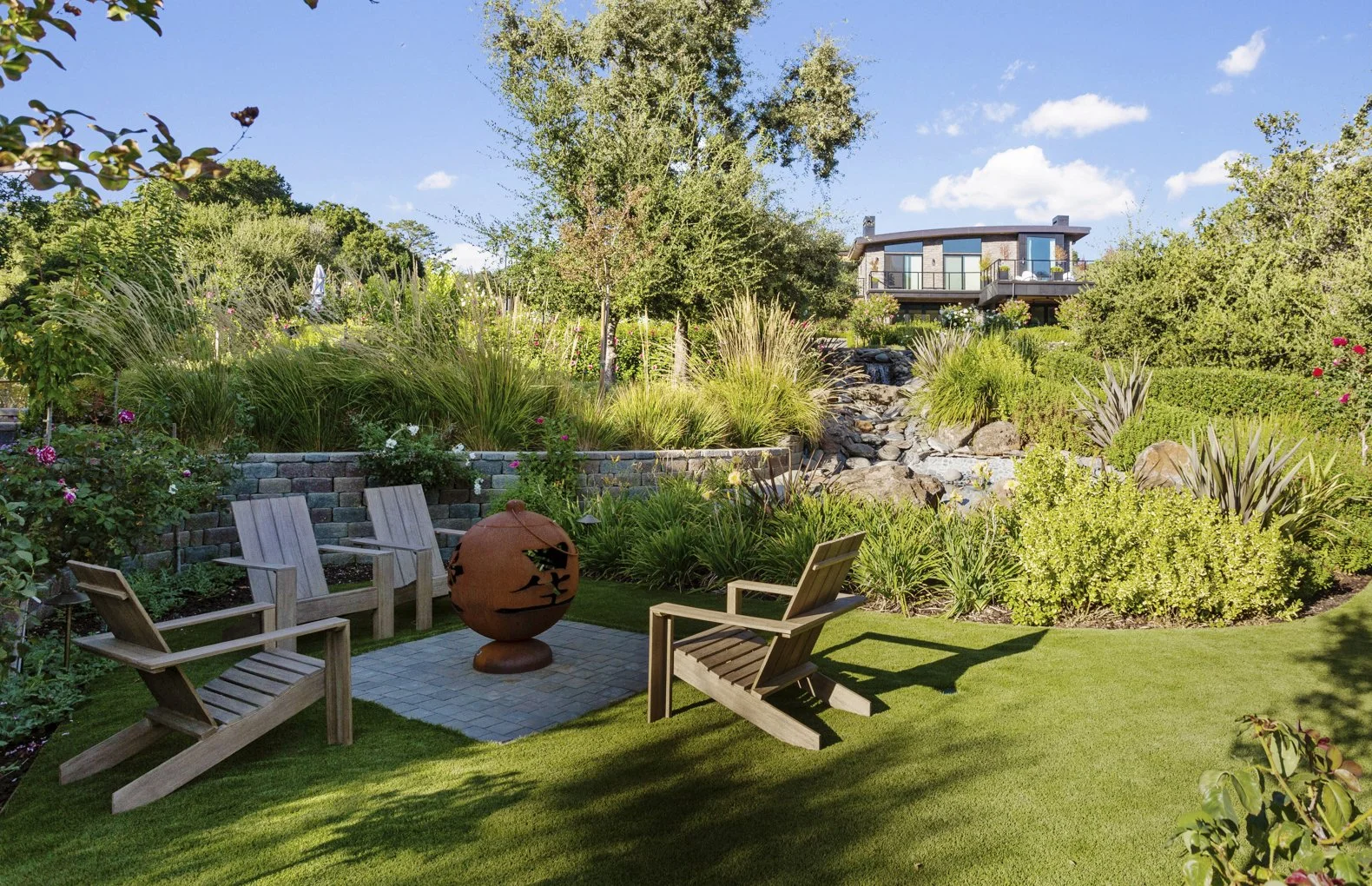 SYLVIA BEEZ CUSTOM-DESIGNED THE KITCHEN AND ALL OF THE 10 BATH- AND POWDER ROOMS, AS WELL AS THE GUEST HOUSE THAT IS LOCATED AWAY FROM THE MAIN HOUSE IN A PARK-LIKE SETTING. FURTHERMORE, SHE DESIGNED THE FIREPLACES, THE MILLWORK, THE BUILT-INS, AND THE LIGHTING, AND CHOSE THE LAYOUT AND SELECTION OF ALL FURNISHINGS, ARTWORK, AND DECOR. FOR THE OUTDOOR SPACES, SHE LAYED OUT AND SELECTED FURNITURE AS WELL AS THE VARIOUS FIRE- AND WATER FEATURES.