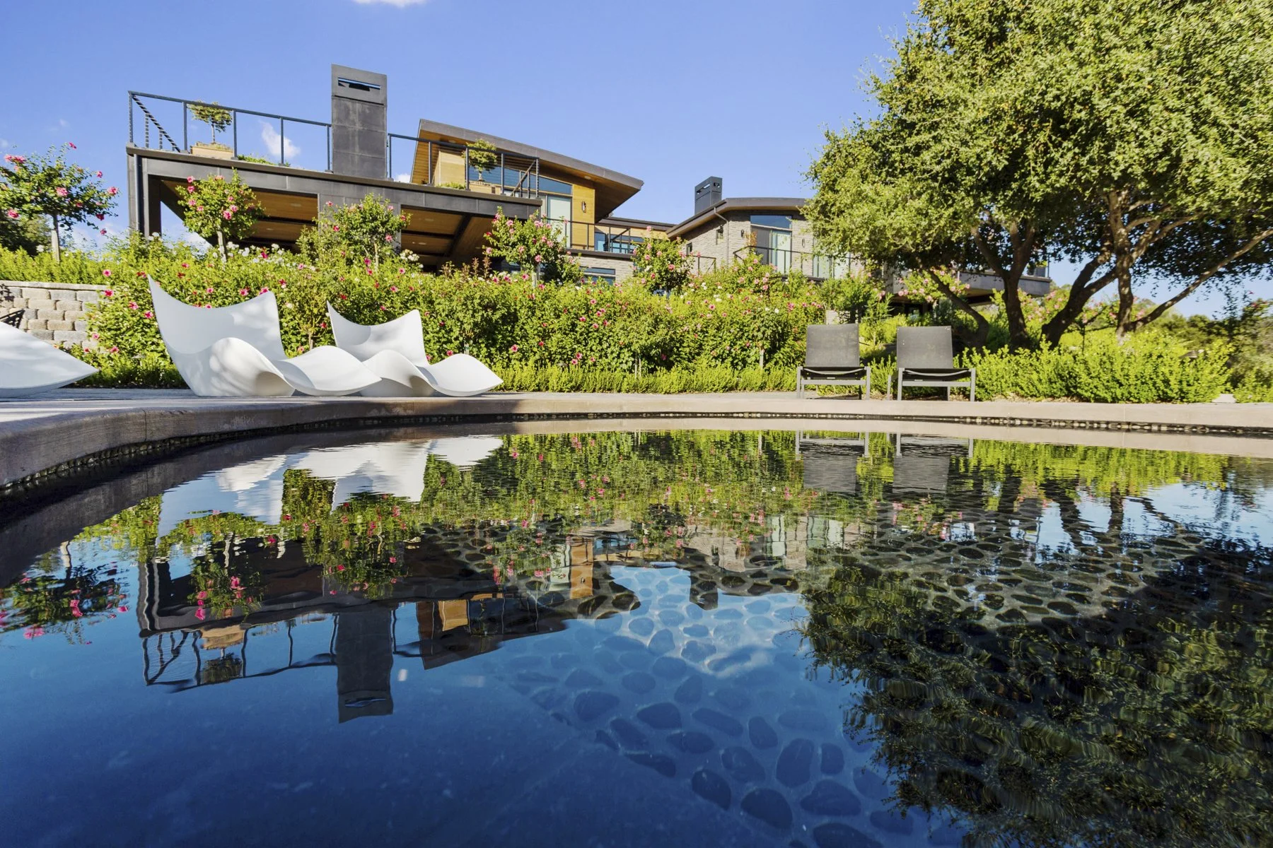 LOCATED IN SILICON VALLEY IN THE BEAUTIFUL HILLS OF SARATOGA, CALIFORNIA, THIS DREAM HOME, CUSTOM-DESIGNED BY THE CLIENT, STANDS IN THE MIDST OF VINEYARDS, WINERIES AND LUSH FORESTS.